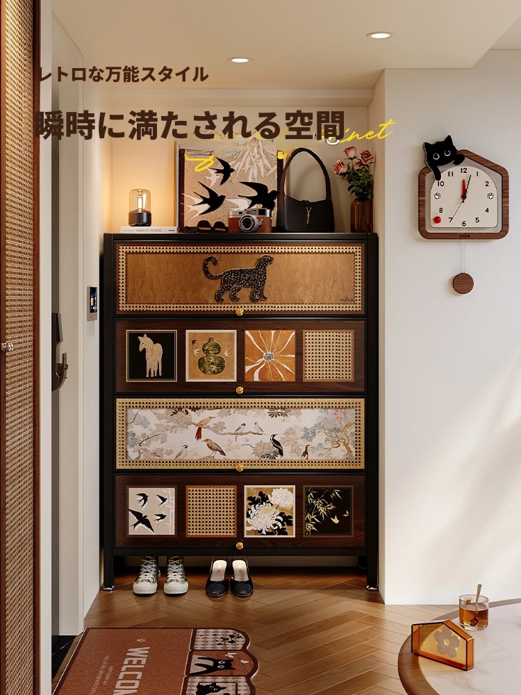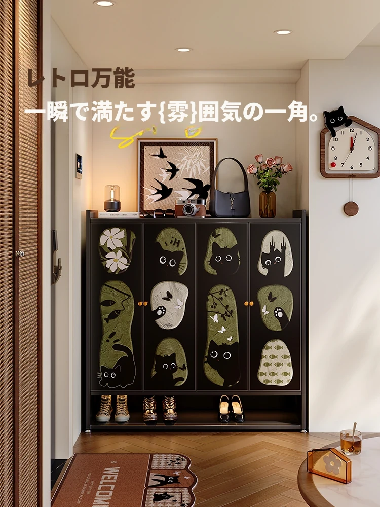 美世達の鉄製玄関収納キャビネット - 中古風デザインの多層大容量シューズキャビネット、壁にぴったりフィット!家の入り口をスタイリッシュに整理整頓。