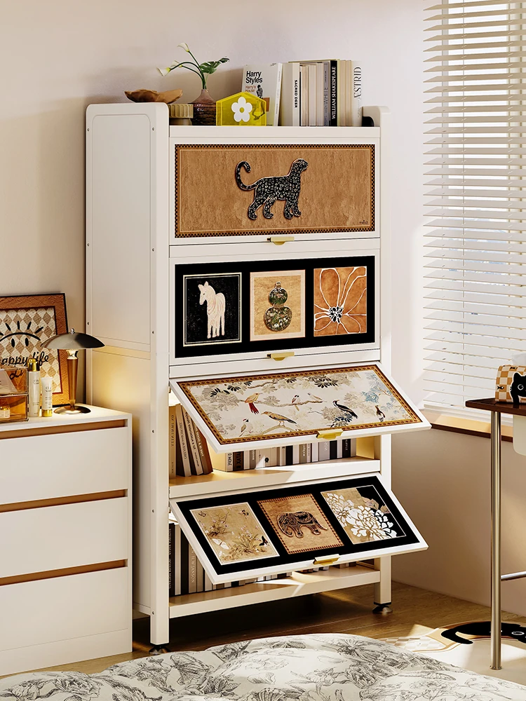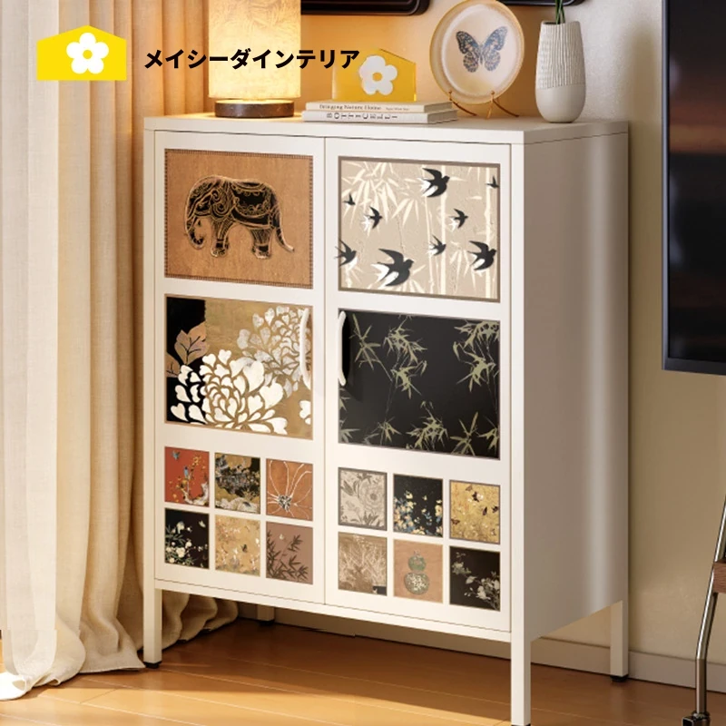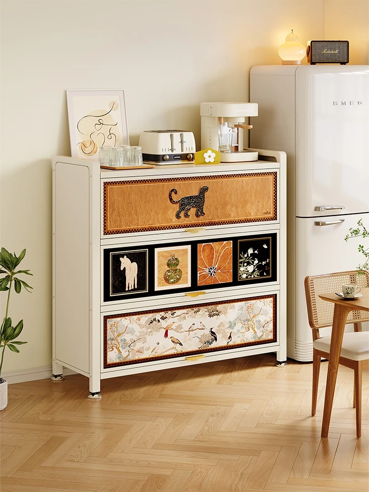 美世达スタイリッシュなアイアン製クリーム色の壁面収納キャビネット - 家庭用ステンレス製5段チェスト、リビングに最適!収納力抜群で、インテリアにもぴったり。