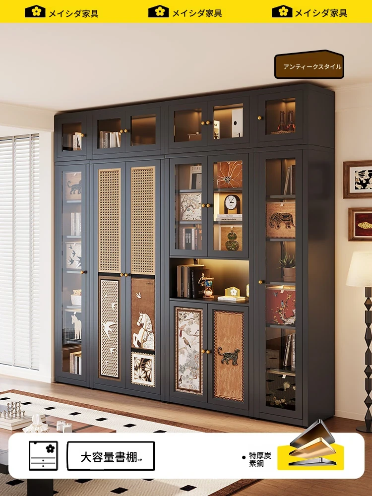 美世达のアンティーク風書棚 - 自由に組み合わせ可能なカラケックのフロアスタンド収納ラック!リビングにぴったりなスタイリッシュな収納ソリューションで、あなたのお部屋をおしゃれに演出します。