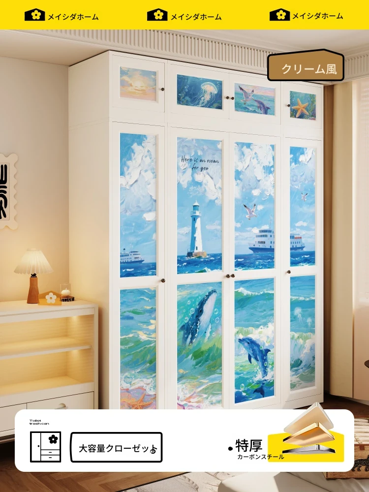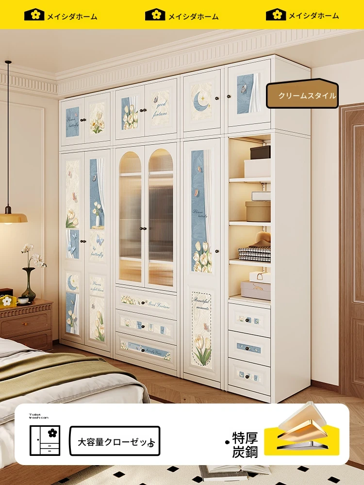 メイシーダのフレンチアイアン衣装箪笥 - 新作2025年、クリーム風デザインの家庭用寝室収納クローゼット、ステンレス製でおしゃれかつ機能的!