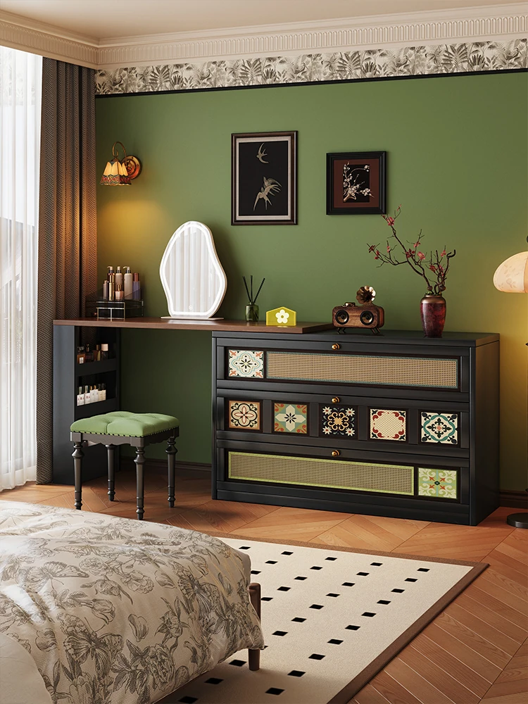 メイシダ南洋レトロ風アイアン製化粧台&チェスト一体型ベッドサイドキャビネット - 頑丈なカーボンスチール製、洗練されたデザインで美しい寝室を演出!