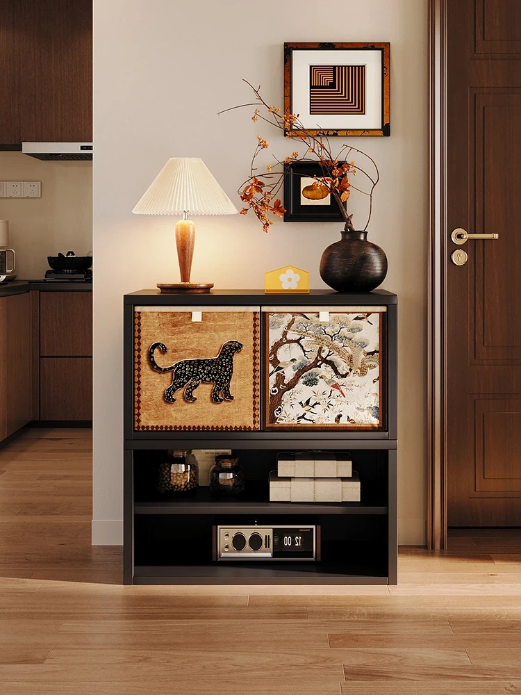 美世达の中古風カーボンスチール製サイドボード - 壁にぴったりフィットする収納力抜群のキャビネット!キッチンやリビングルームに最適なアイアン・レザー・メタルのデザインで、スタイリッシュにお部屋を演出します。