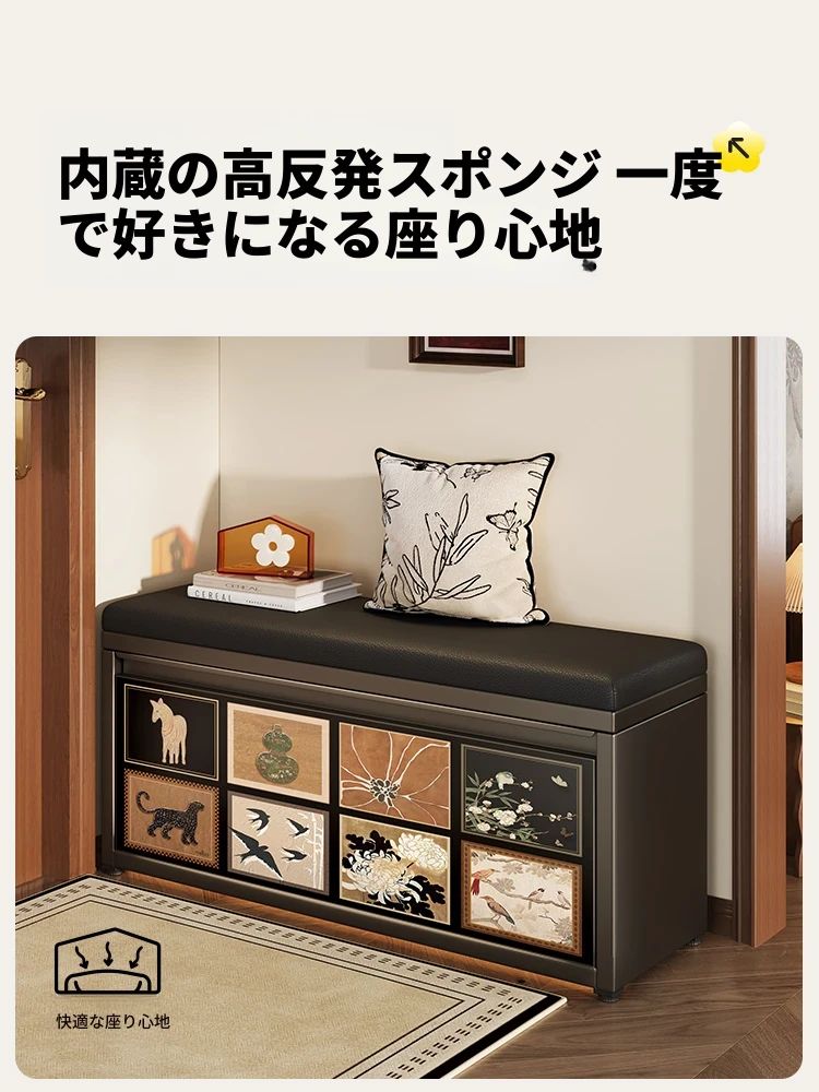 メイシーダ入居用シューズベンチ - ラグジュアリー感溢れる高級デザイン、家庭用玄関に最適!座れる収納付きシューズベンチ&格子キャビネット、カーライクスタイルでおしゃれに靴を履き替え。