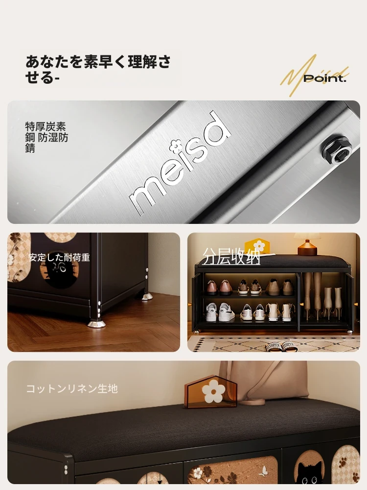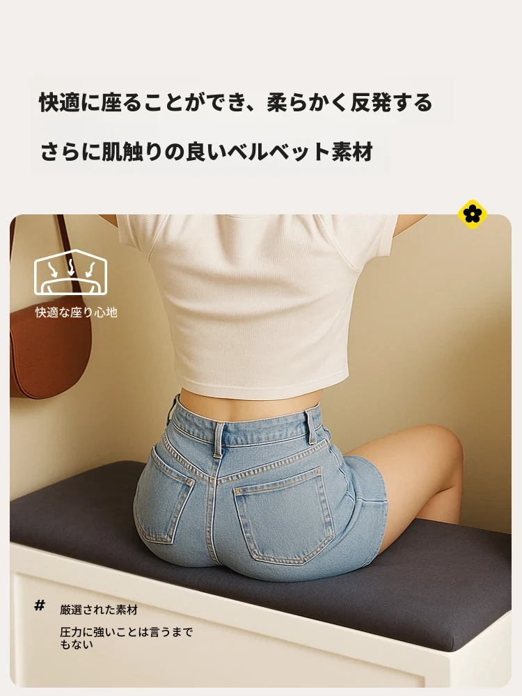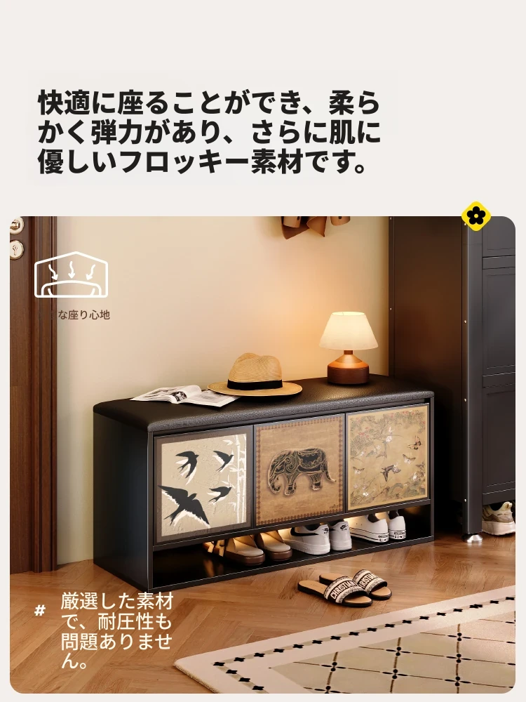 美世达木製シューズスツール - 玄関用・家庭用のスタイリッシュな収納ソリューション。高級感溢れるデザインで、座れる便利さと洗練された収納力を兼ね備えたシューズキャビネットです。